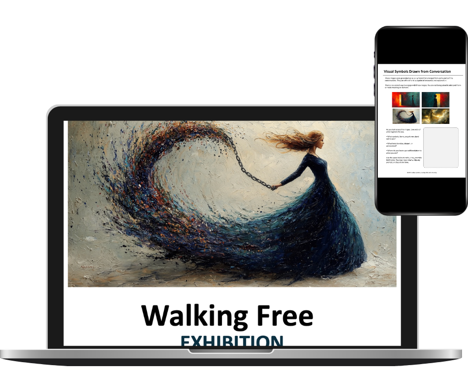 Walking Free brings together lived testimony, photography, and AI-generated imagery to illuminate the courage, pain, and transformation of three people who survived high-control systems.